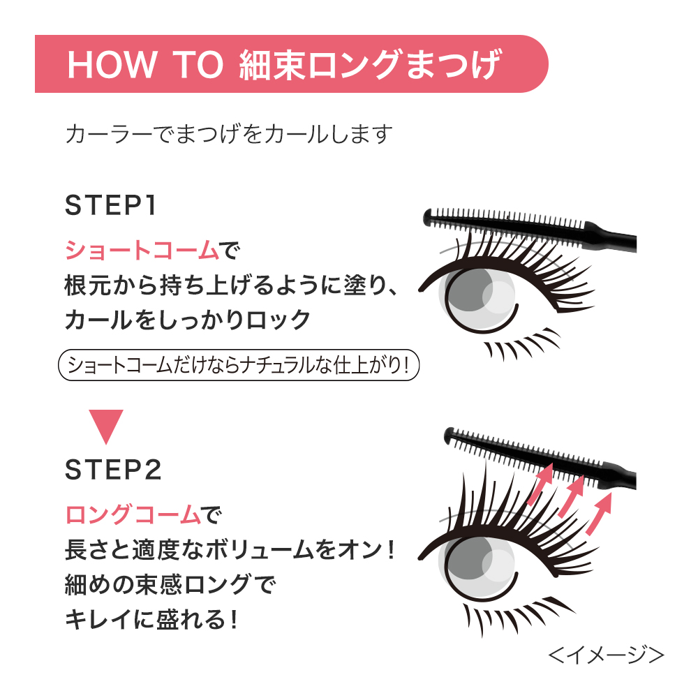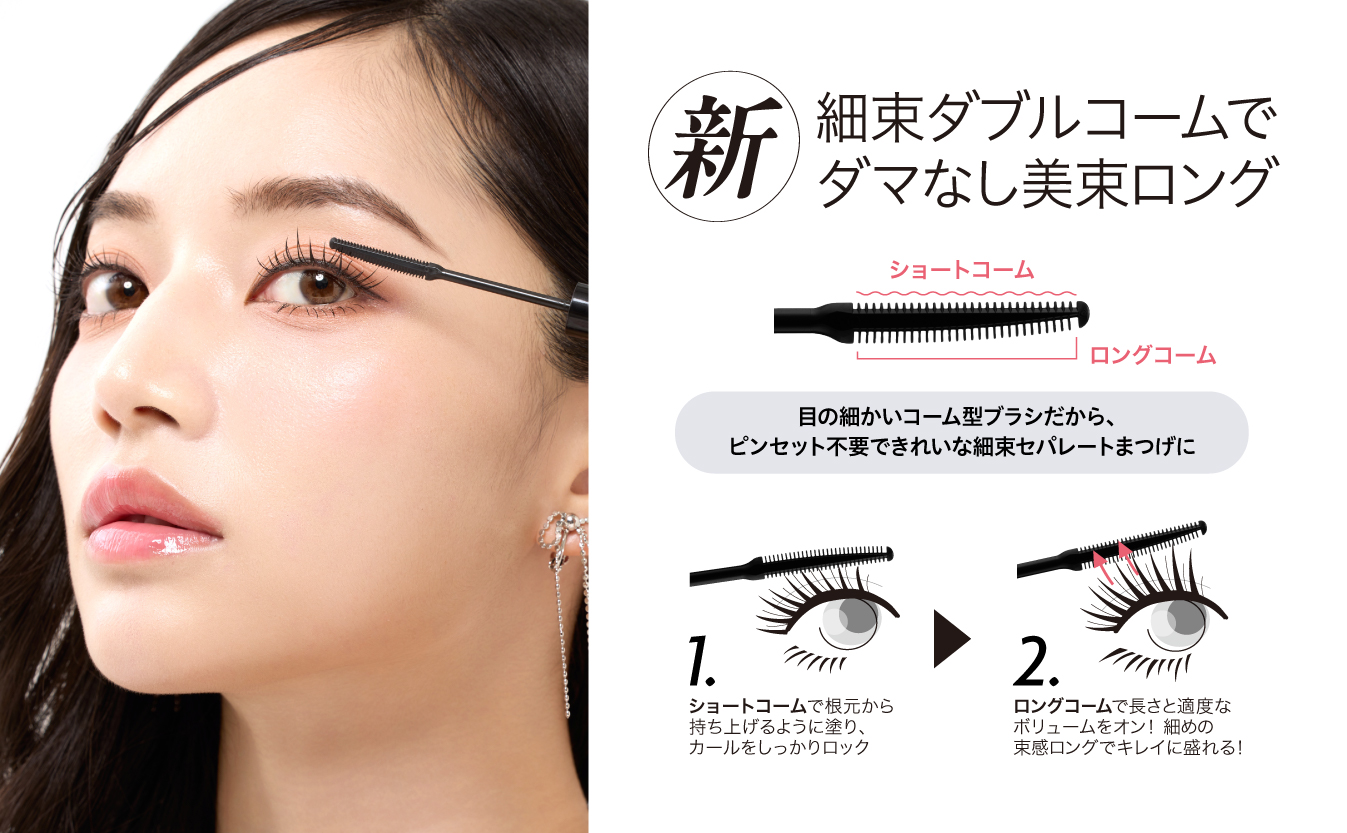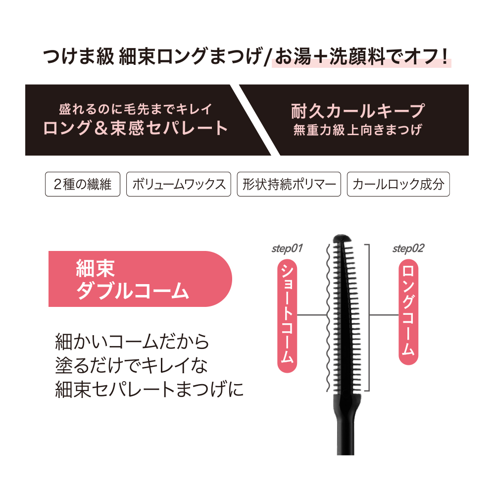 細束セパレートで違和感ゼロ盛れ!細束ダブルコームでキレイめロングに仕上がる細束ロングマスカラ。
