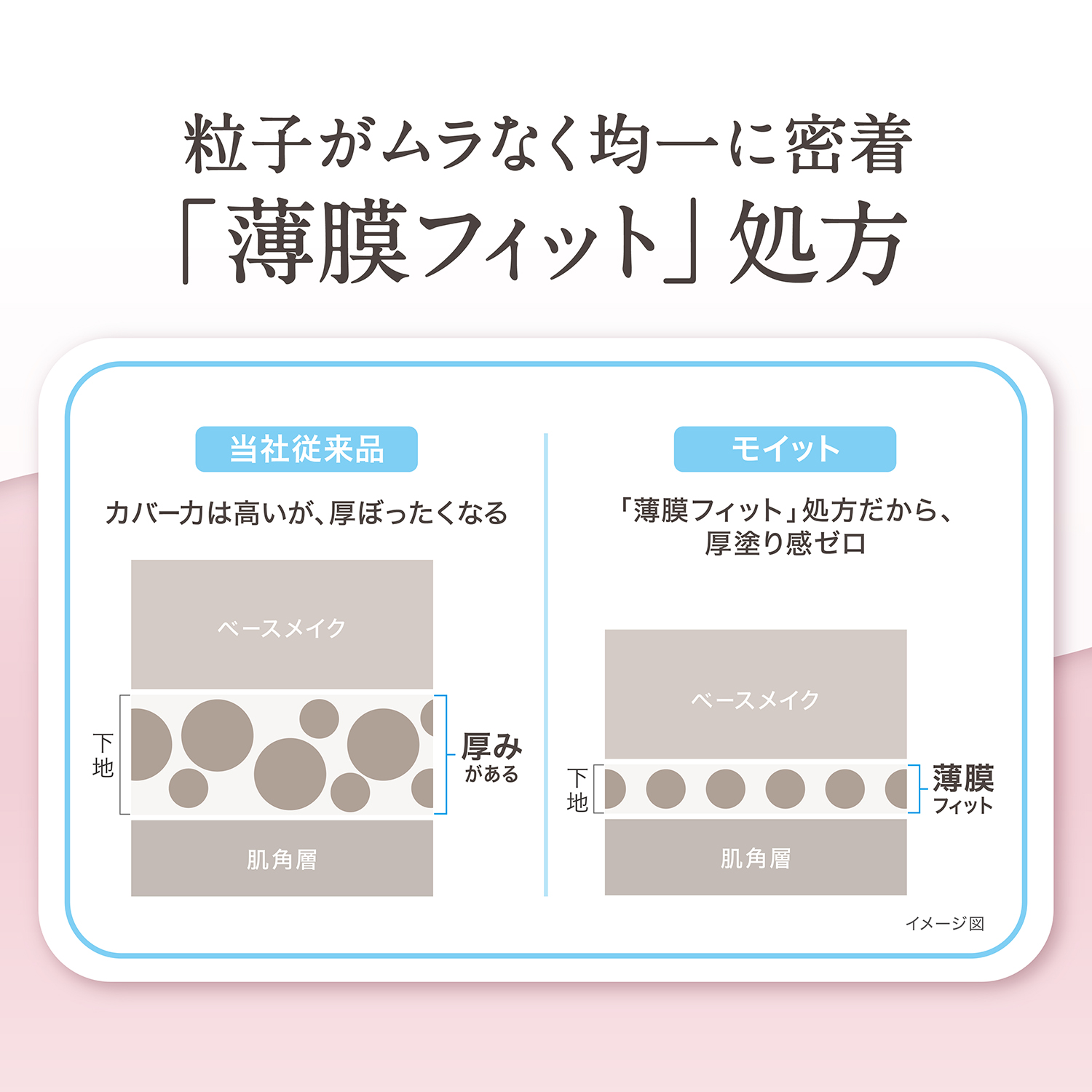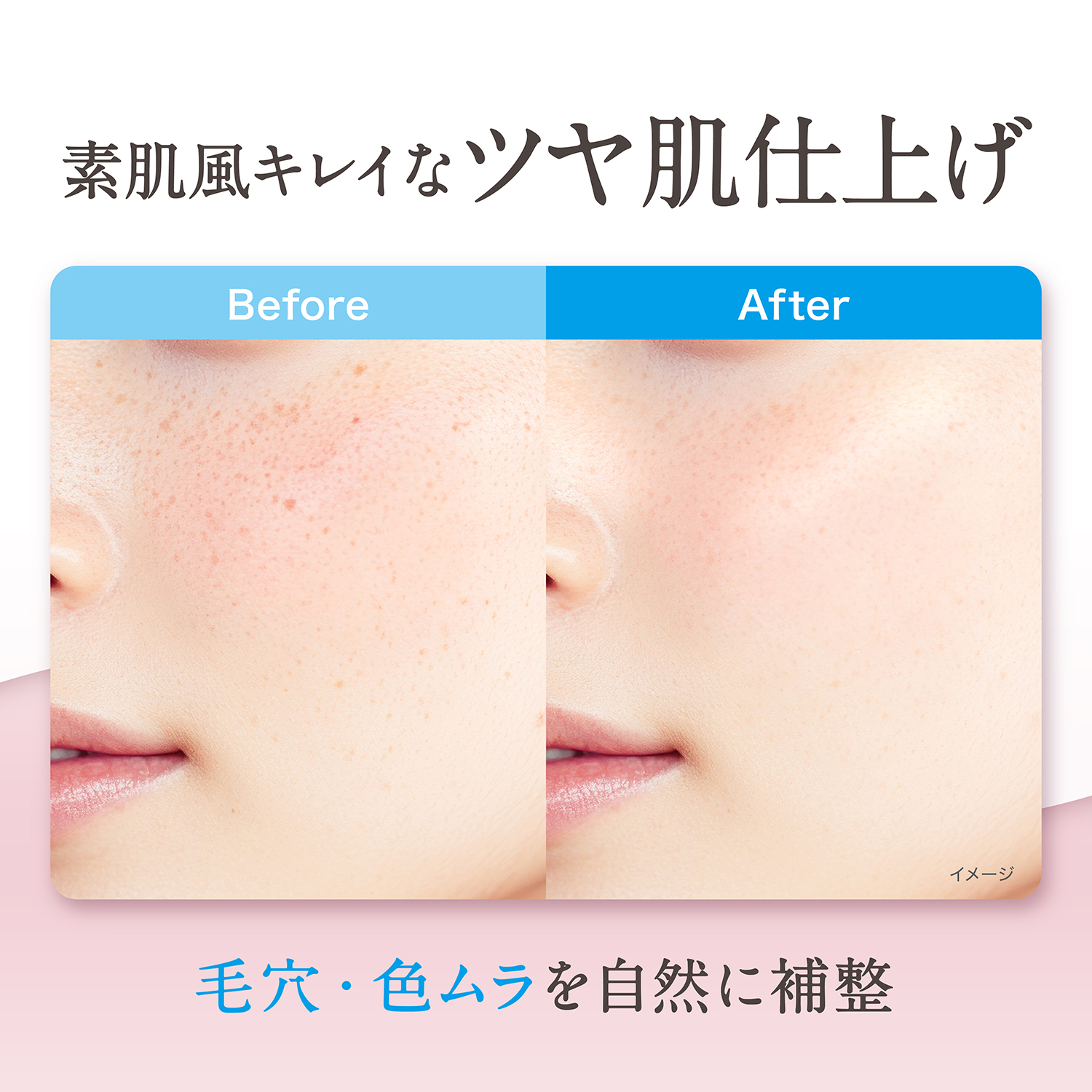 ちゅるんと伸びて、薄膜フィットなのに毛穴・色ムラを補整しながらしっとり肌をキープします。
