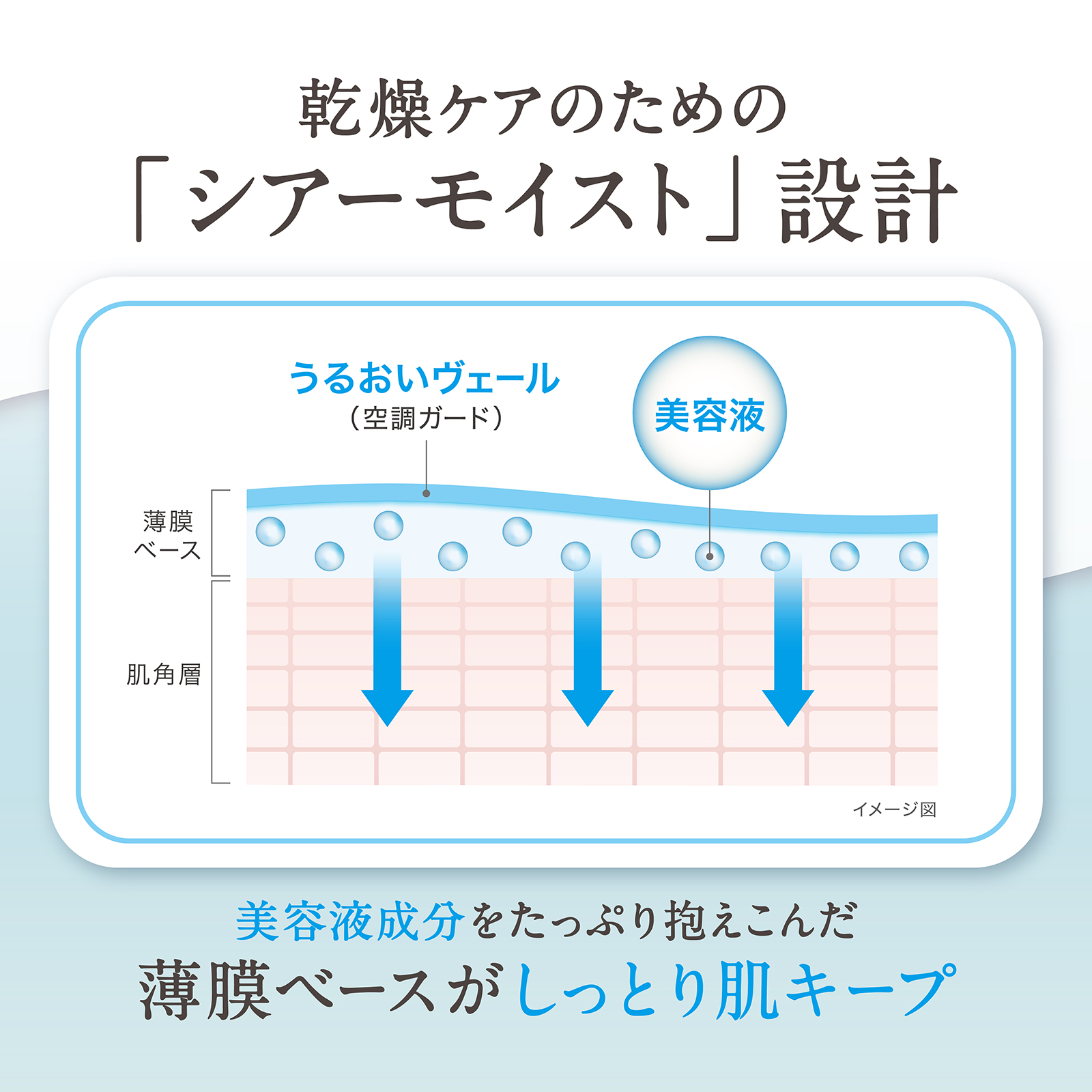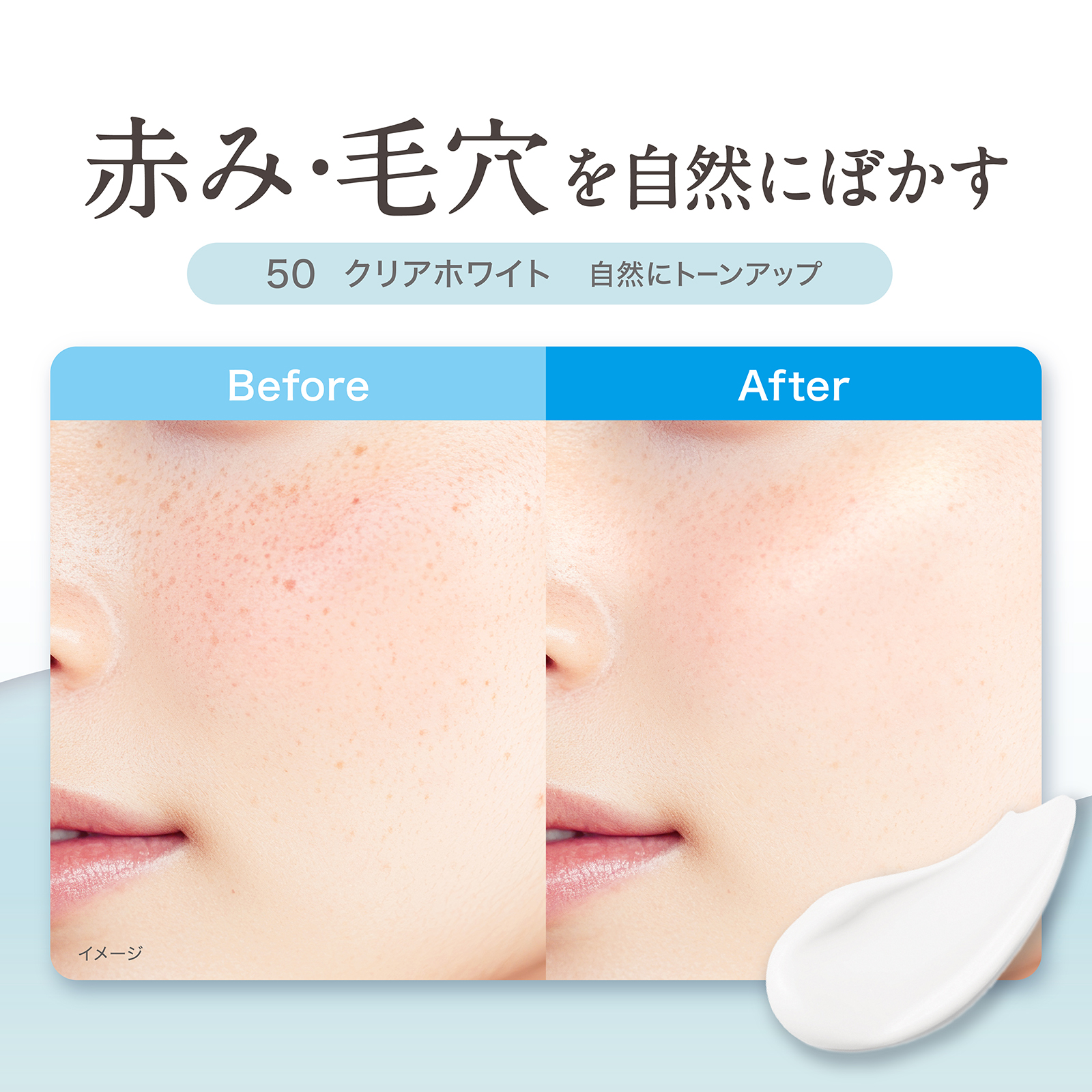 ちゅるんと伸びてしっとり肌をキープし、赤み・毛穴を自然にぼかしながら化粧くずれを防ぎます。