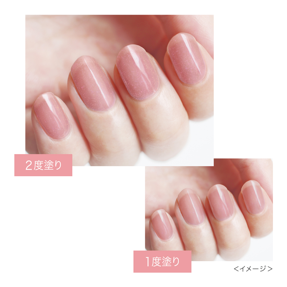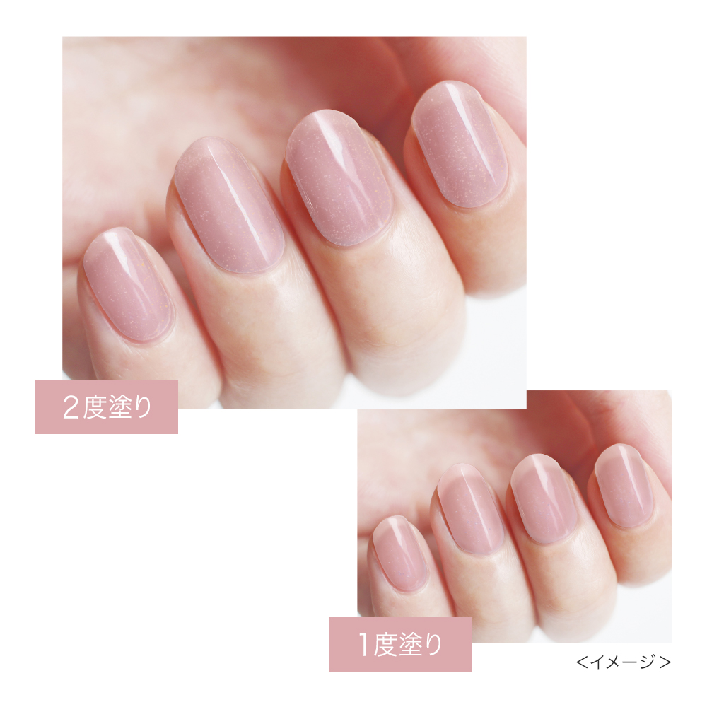 気になる凹凸・縦ジワを補整し、ほんのり血色感とぷるんとしたツヤで、上品なナチュラルネイルに仕上げます。